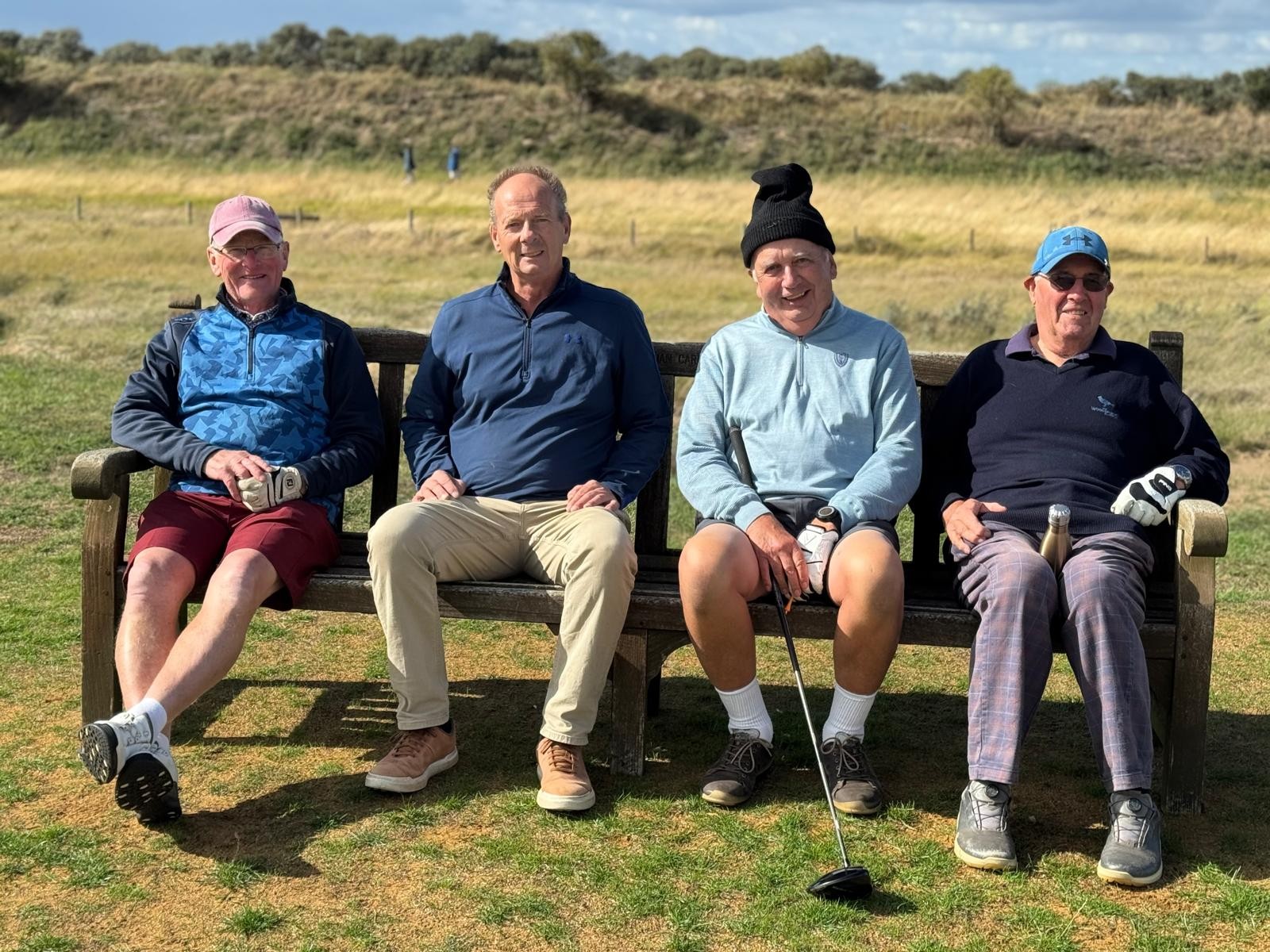 Steven Hull, Robert Macdonald, Tim Pitt and a rather aroused President, Ian Bryce – taking a well earned rest halfway round.